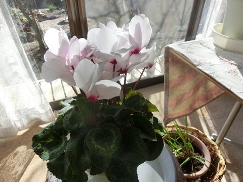 今日も穏やかに晴れています。原種シクラメンが、静かに咲いています。原種シクラメンは、球根です。環境が合えば種で、増えてくれます。耐寒性も抜群にあります。ガーデンシクラメンとは違い、華やかさはありませんが。ひっそりと地味なこの種類が好きです。一枚目の写真の、反対側から撮ると、こんな感じになります。まだ花は咲いていませんが、あと三株植わっています。一面に花が咲くようになると、どんなにか嬉しいのに。種採りは苦手ですが、頑張って増やしていきたいです。お客様から、またお餅とリンゴを頂きました。とっても綺麗に出来上がって、人にあげるときは、お嫁に出すような気持だそうです。透析もしておられるので、今年もちゃんとお餅を作れたことが、自分の体調のバロメーターで、「良かった!」という気持ちだそうです。くずリンゴだけれど、とリンゴも頂きました。B級品を青森から箱買いしたそうです。体が悪くても、めげずに出来る限りは例年のことをやろうとする、そんな心意気に感心しています。感謝です。昨日は、友人の70%の力で生きる、ことに賛成したり、今日は、精いっぱい生きる、ことに感心したり、です。 花ブログランキングに参加しています。 応援のクリックをよろしくお願いします。 昨日のアクセス数 1611 昨日のランキング 3 位