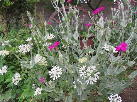 昨日夜半から激しく降っていた雨は、まだ霧雨のようになってシトシト降っています。リアトリスに蜘蛛の巣がかかり、不安定にフルフルと揺れています。リアトリスは、私のなかでは宿根草ですが、根っこが球根状になることもあり、球根植物として取り扱われることもあります。とっても丈夫で手間いらず。穂状に立ちあがり、上から順に咲いていきます。リアトリスの白色もあります。見れば見るほど面白い形ですね~。ウツボグサ。先日 S家へお邪魔したときに、頂いてきました。Sさんの庭は、園芸品種はほとんど入れずに、こういう林や野に咲く自然の花が多いです。紫色がなんとも美しく、とても気にいりました。十本ほどを持たせてくれたので、さっそく適当な木陰に地植えしました。根茎で増える、ということなので楽しみ。もう植物は増やさない、とずっと言ってますが、こうして縁あって、自然に集まってくるのは、また別の話で、受け入れ態勢はオーケーです。この植えたばかりのウツボグサへの水が心配で、娘の家から一泊で帰って来る積りでしたが、雨が降ったので、二泊になりました。娘の家へ行くと、地元の園芸店へ行くのが楽しみ。とても広くて、安くて、うちの近くの園芸店には無いような、ナチュラル系の植物が多く置かれています。でも、結局は、これもあるし、あれもあるし、とわざわざ買うものが無く、見ただけで、替わりに、ケーキを買って帰りみんなで食べました。娘の家でずーっとしていたこと!それは、村上春樹作「騎士団長殺し」を読むこと。本棚でそれを見つけ、読む気は無かったのに、パラパラとめくってみた、最初の一ページ目から惹きつけられ、それからずっと読みふけりました。食事は出て来るし、しなくてはならない用事は無いし、安心して本を読みふけれる、至福の時間です(笑)。やく500ページの一部を読み終わり、二部は借りてきて、家で読んでいます。帰宅すると、電話が鳴り、「さっき行ったけれど、お留守でしたね」とお客さん。仕事も溜まっているし、庭も見なければならないし、やることはいっぱい。結局、借りてきた二部はなかなか読めません。でも、早く読み終わりたい気持でいっぱい。こんな気持ちになったのは久しぶりです。奇想天外な物語。村上春樹ってやっぱりすごい。 花ブログランキンに参加しています。 応援のクリックをよろしくお願いします。 昨日のアクセス数 3519 昨日のランキング 4 位