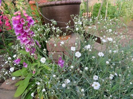 ジギタリスと宿根カスミソウです。カスミソウは、咲き始めですが、ジギタリスは、花が下から散り始めています。こちらも、咲き始めたガウラとジギタリス。両方が盛りの時の写真を撮りたい、と思っても、何かが始まると何かが終わり、が繰り返されています。カモミールが咲いていた場所。まだ全部は抜ききれていませんが、このあたりだけは、すっかり抜いたので、すっぽりと空間が出来て寂しい感じです。コボレ芽を出している、背の高くなるアフリカンマリーゴールドを、庭中のあちこちから集めてきて、植えてみました。昨日頂いたハウスの野菜。パプリカは、食べる分だけピクルスにして、あとは、冷凍します。炒めるときに、すぐに調理できますものね。店先の立派なパプリカとは違いますが、こうして刻んでしまえば、まったく変わりません。綺麗で美味しそう~。ルッコラは、花かつおをかけてお浸しに。ルッコラの花、大好きです。キュウリとミニトマトとパプリカと、新タマネギのピクルス。めちゃくちゃ美味しいわ。トマトソースをかけた鶏ムネ肉。左は、エゴマの葉のお握り。というわけで、昨日の私のランチです。今日は、再びトマトソース作りです。生食用を少し残して、残り全部を煮ました。今日のランチは、トマトパスタ。二本採れたアスパラと、ベーコンも入っています。皮を湯剥きするときに、ボタボタと出る、トマトジュースを集めて、コップに氷を入れて。あ~、美味しい!妹から電話。「とっても言い辛いのだけれど」と。もう八ヶ岳のホテルを予約してくれて、妹夫婦と私、三人とも行く気十分だったのですが、妹の旦那さんの体調が思わしくありません。勿論、もちろん、延期しましょう。内視鏡手術とはいえ、手術してまだ一か月、先日はとっても元気だったのだけれど、少し早く動き過ぎたかしら、と話し合いました。彼の運転で行く予定だったので、途中で具合が悪くなったら大変です。なにも急ぐことはありません。ゆっくり養生してね。 花ブログランキンに参加しています。 応援のクリックをよろしくお願いします。 昨日のアクセス数 2737 昨日のランキング 3 位