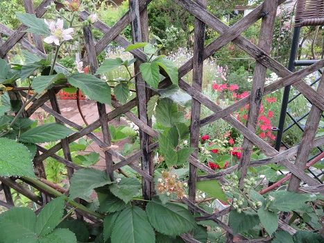 今年も、ブラックベリーがフェンスに絡み、縦横に枝を伸ばして、旺盛に成長中です。花の咲いたのや、ツボミや、散ったのが、混在しています。写真に撮ろう、と思っているうちにすぐに散ります。バラ科なので、野ばらに雰囲気が似ています。花が散った後は、ほら、もうベリーの実の赤ちゃんが出来ています。いろんなジャムを作りますが、私は、ブラックべリーのジャムが一番、と思っています。今年は、ジャムが作れるほど実ってくれるかな。昨日の夕方、きゅうり農家のお客さんから、沢山のキュウリを頂きました。ビニール袋にぎゅうぎゅうに詰めて16本あります。じつをいうと、その前に二人の友人が、電話もしないでごめんなさい、と言いながら、突然、「庭を見せて」、と来てくれていました。もう六時半だったので、気ぜわしく帰っていきましたが、すぐそのあとに来たお客さんに頂いたので、順番が入れ替わっていたら、新鮮なキュウリを、おすそ分けできたのに、と残念ですが、そんな都合よくはいきません。お隣に、キュウリ要る? と聞いたら、うちも今、「キュウリ要る?」と聞きに行こう、と思っていたというので、大笑いです。近くの友人は、親戚がキュウリ農家だし、どうしましょう。田舎は、そういうことなんですよね。保存食を作るしかありません。キュウリを塩で板ずりし、しばらく置きます。コネ棒で、キュウリを叩き、手で裂きます。ごま油で、生姜、唐辛子を炒め、砂糖、醤油、酢で漬け液を作り、温めて、熱いうちに、水気をとったキュウリにかけます。新鮮なキュウリ、パリパリと美味しく出来ました。今日午後に、別の二人の友人に会うので、おすそ分けしましょう。午後は、去年も行きましたが、友人の出演するマンドリン楽団の、サマーコンサートへ、共通の友人三人で出かけました。二時開演で、一時半開場なので、早めに着きましたが、もう駐車場はいっぱいで、大盛況でした。マンドリンの繊細な透き通った音色が心地よく、ずっと稽古を続けてきた友人にも感心しました。去年よりも、一段と素敵な演奏だな、と思いました。マンドリンに合わせて、観客が全員で歌うような、プログラムも組まれていて、とても楽しかったです。 花ブログランキンに参加しています。 応援のクリックをよろしくお願いします。 昨日のアクセス数 2240 昨日のランキング 3 位