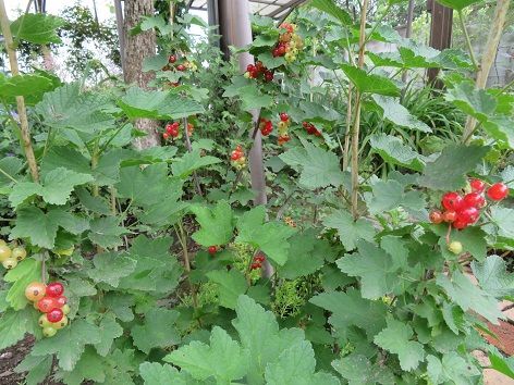フサスグリです。高さ一メートルくらいの落葉低木です。ブドウのような大きな葉っぱに包まれて、キラキラとガラス玉のように綺麗な実です。緑色から赤色に変化したら熟しています。ケーキに乗せたり、生食したり、ジャムにしたり、と、利用できるようですが、まだ食べたことはありません。とっても綺麗なので、見ているのが好き。全部が熟しきらない、緑色と赤色が混じった状態も綺麗ですね~。毎日少しずつ、矢車草を抜いては、細かくし、乾かしてからゴミ袋に詰め、と整理しています。抜いた後には、百日草が芽を出しています。選手交代、百日草が、百日、秋まで咲くコーナーになることでしょう。障害物の無い場所に芽を出した子は、もう15cmほどに育っています。庭中のいたるところに芽を出しているので、どの場所を残して、どれを抜くか、庭の構成を考えながら、思案しますが、なんせデザイン性のセンスが無いので、どうしても行き当たりばったりです。断捨離、片付け、いつも考えています。ノートを作りました。毎日、どこか一か所を磨く、というか、綺麗に片づけるのです。一年で、365か所、綺麗になるというわけです。一か所は、ほんの小さな引き出し一つでいいんです。今日は、玄関の下駄箱の右側の、三段あるうちの一段だけを(笑)。いろんな花瓶が入っています。三個捨てました。棚を雑巾で吹いて、乾かすために開いておきます。そこへお客さん。ゴメンナサイ、片付け中です~。引き取りに見えた方ですが、知人でもあるので、上がって頂いて、お茶タイム。先日、お直しを持っていらしたときも、お茶をしたので、「ごちそうさまでした」と、今日はもみじ饅頭を持って来てくれました。先日、お話した時間がとっても楽しくて、その夜はぐっすり眠れて、今日もお話したいな、と思っていたんですって。え~え~え~、何を話したかも、私は忘れているし、普通のことなのに。そんなふうに思ってくれる人もいるんだ~、とホントびっくりです。安眠剤になっただなんて。これ書くと、自画自賛もいいとこで、恥ずかしいことだとは分かっていますが、あんまりびっくりしたので、書きます!「この人、ただものじゃない」と思ったんですって。アハハ、大爆笑しましたよ。いえいえ、ただ者中のただ者ですよ。まさかのまさか、そんなふうに褒められること、もうないでしょうね~。傾聴体質が身についているのかも知れません。でも、有り難いことではあると思います。べつにお直しが無くても、いつでもお寄りください、と言って、お別れしました。 花ブログランキンに参加しています。 応援のクリックをよろしくお願いします。 昨日のアクセス数 1959 昨日のランキング 3 位