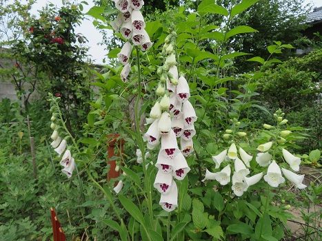 遅ればせながら、庭のあちこちで、ジギタリスが咲き始めました。こんなに素晴らしい花たちが、コボレタネで咲くなんて信じられませんね。背の高いジギタリスが、畑などで、群生しているのは素晴らしい景色ですが、うちの庭のように、他の植物と共存しながら、あちこちに咲いているのも良い景色です。いつも規格外のトマトを下さる人のハウスへ。友人のお姉さんのハウスです。友人が誘ってくれました。食べろ食べろ、とトマトを切っては勧めます。食べても食べても、次々に切ってくれます。生のトマトをこんなに食べたのは初めてかも。じつに美味しいの!許可を貰って、撮影させて頂きました。ミニトマトが整然と並んでいます。左はエゴマ、右はルッコラ。好きなだけ摘んでいい、と言ってくれます。空中栽培の自宅用のスイカ。面白~い! 珍しい景色に夢中です。こんなにいろいろと頂いてきました。規格外の品物だから、貰ってくれると有難いなどと言ってくれました。さて、どう料理して、どう保存しましょう。無駄なく使いますので、明日も見て下さいね。 花ブログランキンに参加しています。 応援のクリックをよろしくお願いします。 昨日のアクセス数 1997 昨日のランキング 3 位