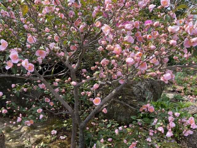 近所の友人Kさんから朝9時ころ電話。椿の花が凄くて、近年にないほど咲いているので、お茶ついでに見に来てほしい、と言います。WBCを見ていたので、エッ!見てないの?とびっくり。あっ!今日は朝からだったね、じゃあ、お茶しながら二人で見ましょう、と。なんて可愛い椿でしょう。小ぶりのピンクの花が、びっしりです。綺麗だなあ。こういう時に、万朶という言葉を使うのでしょうか。奥の濃いピンクは、昨日載せた吉野ツツジ「春一番」。何年も前に、500円だったので、二人で、お揃いで買い、大きくなりました。テーブルのクリスマスローズ。お茶飲みながら、おしゃべりしながら、野球観戦。日本勝った!良かったねー。もうダメ!と途中で諦めたけれど、選手たちは凄かった!村上さんが試合を締めて、良かったな。ほっ。お昼に食べてね、と西瓜を頂いてきました。すぐに頂きます。(笑) 花ブログランキングに参加しています。 応援のクリックをよろしくお願いします。 昨日のアクセス数 1981 昨日のランキング順 6 位