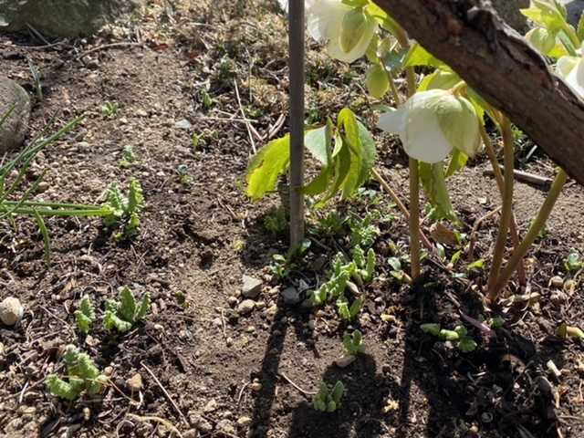 白いクリスマスローズの周りに、日本桜草の芽。こんなに、広範囲に出たのは初めてかも。はっきりと、桜草の葉の形して、ぞくぞくと。水仙の辺りにも、進出しています。クリローのこぼれ芽も出ていますね。Eさんからのライン。「弥生三月、春ですね。お雛様、飾られているだろうな、と思い出しています。」去年は、五目寿司を作って、皆さんをお呼びしたのよね。去年三月のブログを見たら、計4回も食事会をしています。付き合いのグループが違うから、分けたのですが。食事会にも来てくれて、五目寿司をお代わりしてくれ、あの時、お代わりしたのよね、と皆でからかっていた、若い友人が、半年前に、突然亡くなり、そのショックが、ずっと尾を引いていて、思い出すのが辛くて、今年は、まったく食事会をする気が起こらないのです。 Eさんには、「お雛様、いつでも見に来てね」と返信。でもね、どうせ、お茶にしておしゃべりするのなら、五目寿司を作っちゃおうかな、と、少し、心が動きだした気がします。 花ブログランキングに参加しています。 応援のクリックをよろしくお願いします。 昨日のアクセス数 1831 昨日のランキング順 5 位