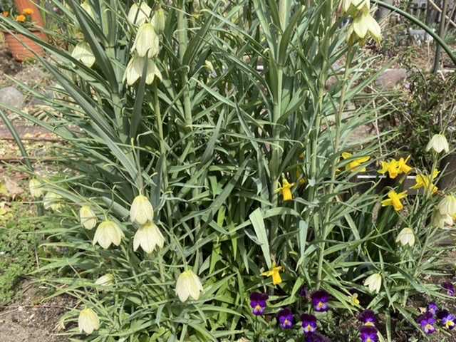 バイモユリが開花。みんな下向いて地味な花です。まわりには、ティタティタやコボレのスミレ達。花の中は、意外や、こんな網模様があります。別名は、アミガサユリといいますよ。茶花にも使われますが、玄関には地味過ぎですね。なので、反対側には彩りを。先日頂いた花束も、まだまだ綺麗。部屋に飾って、眺めては楽しい気持ちになります。野菜を頂く。感謝。 花ブログランキングに参加しています。 応援のクリックをよろしくお願いします。 昨日のアクセス数 1623 昨日のランキング順 6 位