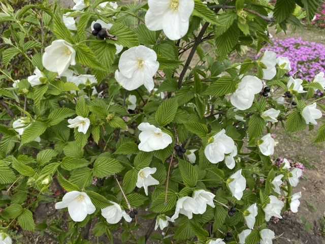 白山吹が満開。去年の花の後の黒い実が同居していて、白と黒の対比が、キリッと清潔な感じがします。「七重八重 花は咲けども山吹の 実のひとつだに 無きぞ悲しき」という有名な歌がありますが、なのに、なんで、白山吹は実が付くのかしら、と思ったら、花や葉が似ているだけで、全く違う種類ですって。何だか造りもののように綺麗だわ。足元には、カレンデュラと芝桜。庭の小径のあちこちに、芝桜、芝桜。昨日は、私たちの会の代表のUさんがひょいと来てくれ、芝桜が見事ねー、と褒めてくれました。(笑)暫く庭めぐりをして、お持たせで紅茶飲んで、お喋り。久しぶりに会えたので(Uさんが忙し過ぎて)、嬉しくて。会員の○○さんが、趣味の養蜂を止めたとか。蜂蜜を分けてもらったりしたこともありますが、女王蜂が死んでしまったらしい。会員が高齢になっていくというのもあるでしょうし、年月とともに、会員の事情も変化していくね、と話し合いましたよ。そうそう、「蜂、飼ってみない?」ですって。(笑)アハハ、まずは虫が触れないから絶対に無理ですよ。 花ブログランキングに参加しています。 応援のクリックをよろしくお願いします。 昨日のアクセス数 2174 昨日のランキング順 6 位