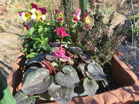 だいぶ前に作った寄せ植えです。ガーデンシクラメンとビオラの後ろに、寒さに強いカルーナが入っていますね。これが普通のカルーナです。最近、背丈の高いカルーナを見つけて、地植えにしてみました。もう二週間くらい経っています。霜が降りるような最近の寒さにも一向に平気。植えて良かったな、と思います。友達から、「あなたの好きな味」と言って、頂いたのに、冷蔵庫に保管していて、あっという間に日が過ぎて、昨日見てみたら、消費期限が過ぎていました。ホントに、ごめんなさい。近くの友人を呼んでお茶会、とも思ったけれど、忙しいし(一応仕事が)、諸費期限を過ぎているのは、自分では食べるけれど、人には食べさせられないし、というわけで、昨日も、今日も、私が頂いています。ゴメンね、Mさん、とっても美味しいです。今日は、こんなカラフルな、クリスマスバージョンのお菓子を頂きました。アハハ、これは、日持ちがしそうです。ゆっくりと頂きますね。ありがとうございます。 花ブログランキンに参加しています。 応援のクリックをよろしくお願いします。 昨日のアクセス数 1482 昨日のランキング 2 位