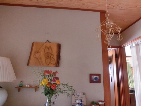 昨日、玄関に花を飾り、ヒンメリを新しく吊るし、掃除したら、