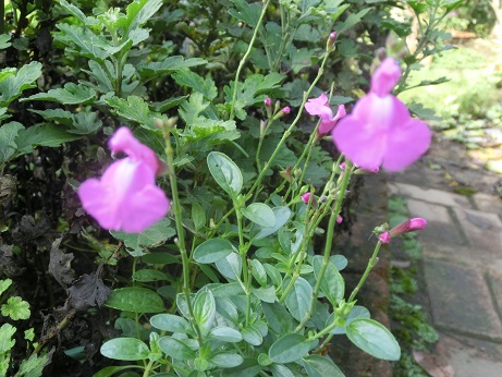その横に咲いている百日草は、コボレタネで育ち、とっても元気。