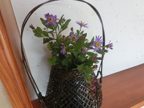 籠に活けてみたら、落ち着きました。やはり、菊は「和」ですね。