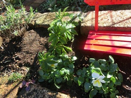 クリスマスローズは、庭中に芽を出しているのを一つ持ってきました。