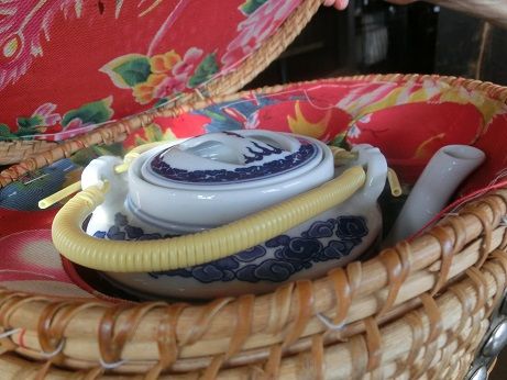 こんな保温用のバスケットに入って、プーアール茶が出ますよ。