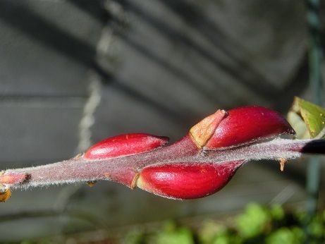 ネコヤナギの花芽が赤くなって、冬の青空に映えてとても美しい。