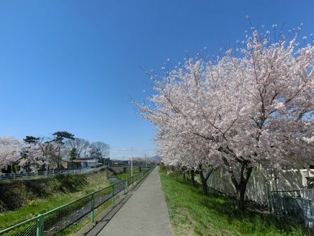 帰路、裏手の土手に上がり、桜の道を歩いてみました。