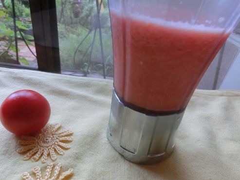 ミニトマト5ヶ、塩少々、氷を入れてブィ~ン、