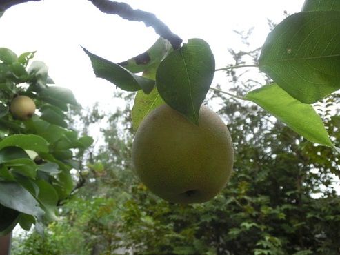 梨。実がここまで大きくなったのは、植えて十年以上経ちますが、初めて。