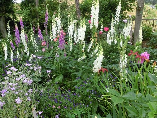 どの隙間にも、ジキタリスが顔を出していて、コボレタネで増える一方だとか。
