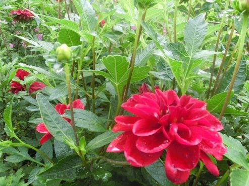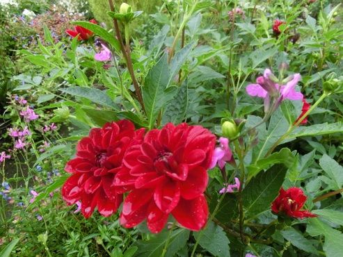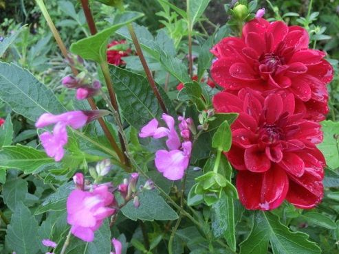 ピンクのセージも一緒に、入り乱れて咲いています。