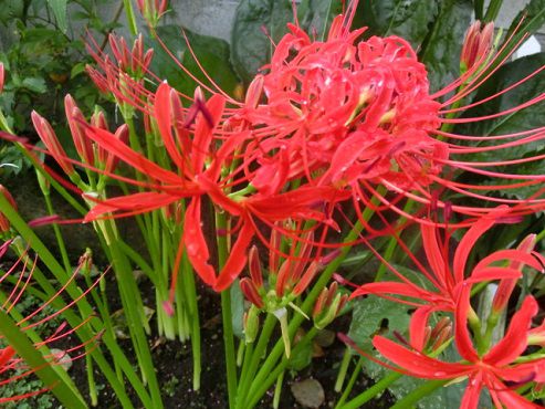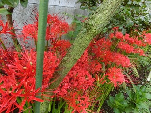 ​​​​​​​​​​​庭のはずれのブロック塀に沿って、彼岸花がずらりと勢ぞろいです。