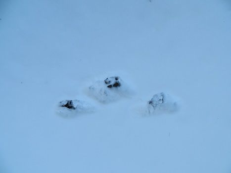 中央部分の、前が大きな足跡二つ、後ろが小さな足跡二つ。