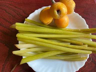 味噌汁は、豆腐とエノキダケ。ビワ。