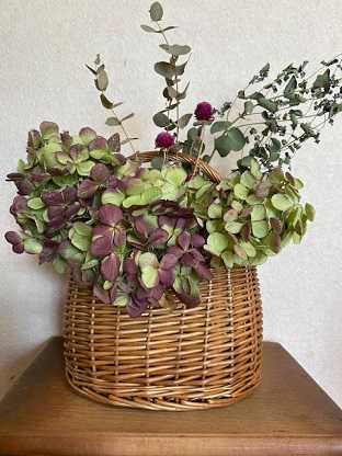 ユーカリの葉と、去年のドライの千日紅を足して、