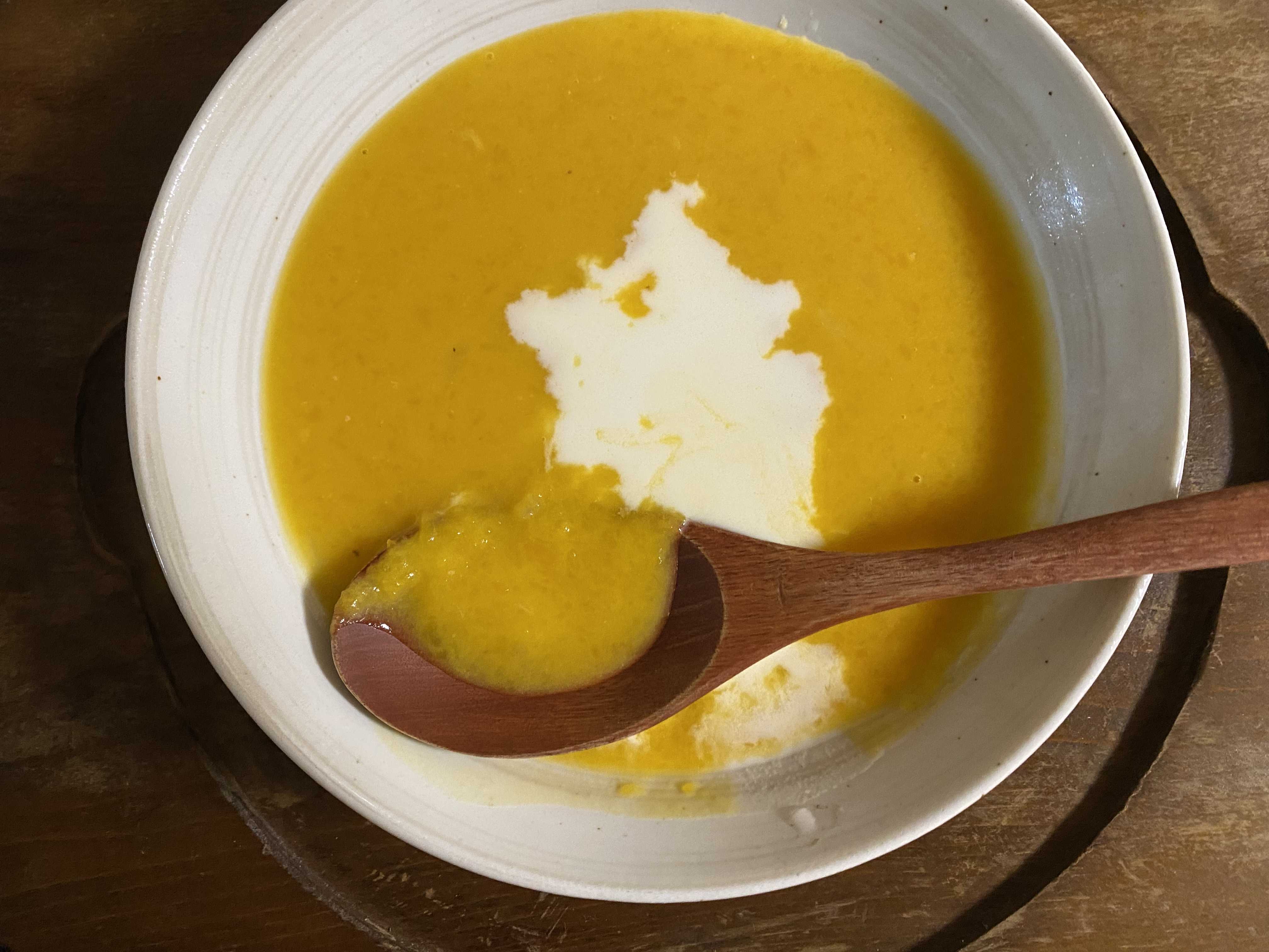 くり抜いたのを容器にして、煮た中身を戻し入れます。