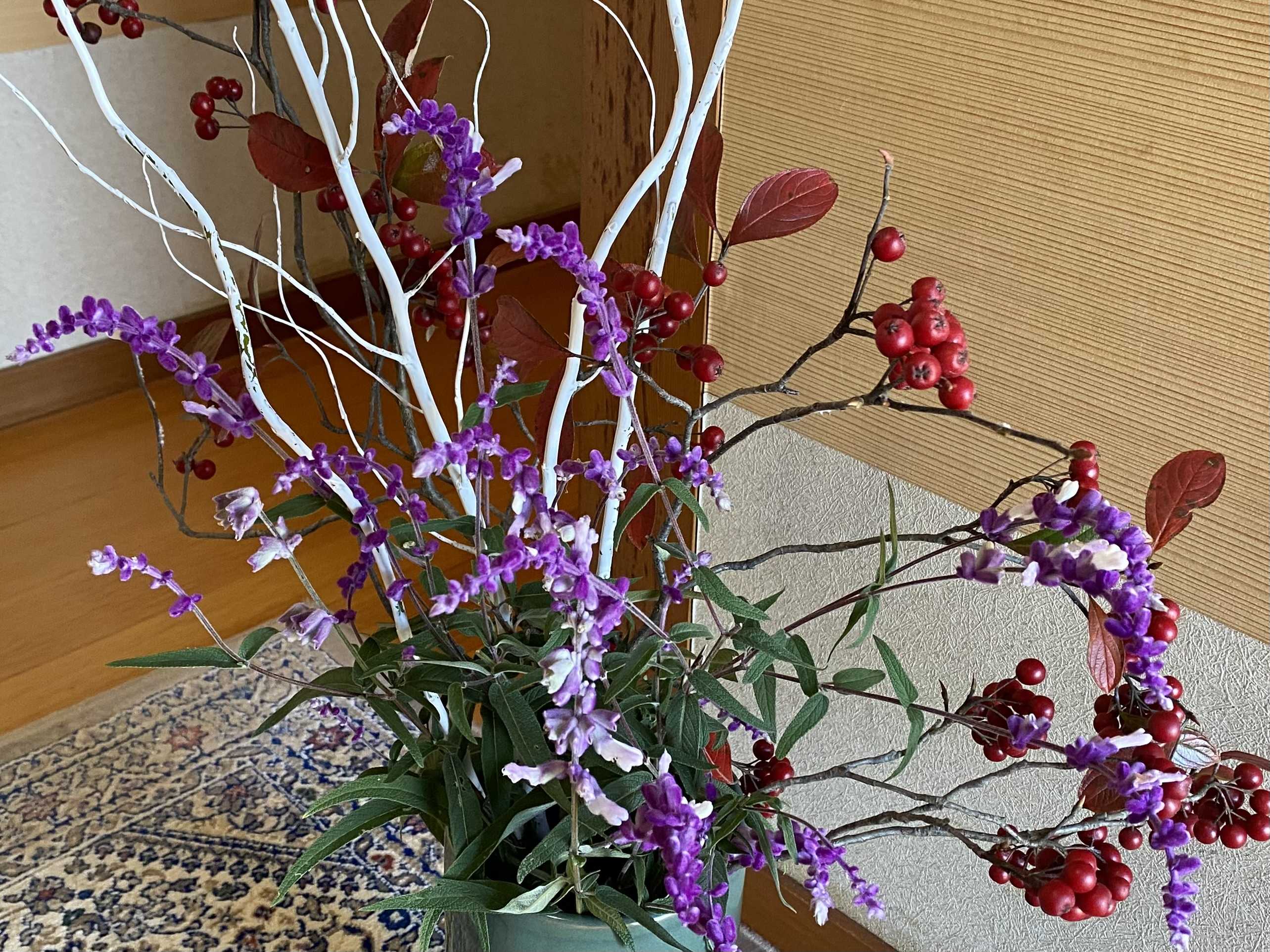 昨日、Nさんが白く塗られた枝を持って来てくれる。
