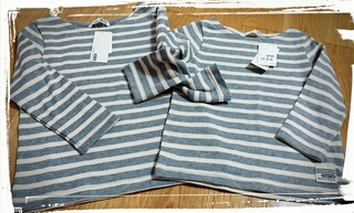 こんにちは♪昨日は更新出来ませんでしたが、ご訪問に応援ポチどうもありがとうございました(*^^*)今日はムシムシモワモワで暑い1日でした(;´д`)昨日はバザーの準備で幼稚園に行ってきました~。夫が休みだったので車で送り迎えしてもらいました。早めに幼稚園の駐車場に着いた夫、待っている間丁度園庭で長女が遊んでいたようでちょっと車から降りて車のそばから園庭の方向を見ていたら…バスの運転手さんから凄い警戒されていた模様w怪訝な表情で夫を見ていた様で、こ、これはオレ絶対に変質者だと思われている気がする…!Σ(´Д`;)と思った夫は次女を車から降ろしたそう。すると運転手さんの表情も一変!にこやかな顔で微笑んでくれた様ですw疑いが晴れてよかったね…w来週は月から金まで毎日幼稚園です…(;´д`)昨日はバースデイに行ってきました~。そして長袖のボーダーTを購入☆コットン100%。左下にタグが付いています♪色はグレー×ホワイトです(^^)色は何種類かあって、他にネイビー×ホワイト トリコロール ブルー×ネイビー グリーン×ネイビーがありました。長女はグリーン×ネイビーがよかった様なのですがサイズがなかった…(;´д`)お値段は780円でした♪ちなみに男の子用の方にありました~!□着画□チェックワンピ、インナーワンピ sun valleyパンツ 無印靴 ベンシモンベレー アウトレットで購入のプチプラ*気になるもの*ご訪問ありがとうございました(*^^*)にほんブログ村ポチっと応援して頂けると嬉しいです♪いつもありがとうございます☆
