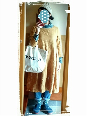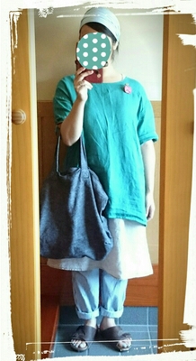 こんにちは♪昨日は更新出来なかったにも関わらずご訪問、応援して下さりありがとうございました!(*^^*)今日は夫の誕生日~。そんな本日の夕食のメニューはカレーです。別に夫の好物でもなんでもないという…w明日休みっぽいのでお祝いは明日する予定です~(^^;さてさて、待ちに待ったahaahaさんワンピ届いてます♪気になっていたワンピの色味ですがこんな感じ。エメラルドグリーンをちょっと薄めて渋くした、みたいな(わかりにく!)優しくて落ち着いた感じのグリーンでした(*^^*)取り敢えず色のレポでした。後日また着画でお披露目させて下さい~☆そして一緒に頼んでいた70%OFFのmakeupのトート。こちら実はLを頼んだのですが、Lはモデルさんの持ち画がなくて大きさがイマイチわからなくて「やっぱLじゃ大きいかな?Mにしとけばよかったかなぁ…(;´д`)」ってちょっと後悔していたんです。しかし荷物の多い私にはLで正解!丁度良かったです!正面は赤の持ち手。そして裏は…グリーンの持ち手♪可愛いー!ちなみに色はBlueです。生地も凄いしっかりしてるし、ファスナー付だし。中にもファスナー付ポケット付いていました。このお値段は凄いお買い得だと思います(*´∀`)♪ただ中の臭いが結構きつくて…、試しに洗わず干してみて、ダメだったら洗って干してみよう!と思い本日バッグ裏っ返して(中を表にして)外に2時間位干してみたところ…(天気良し)ほぼ消えました~!個体差はあると思いますので絶対とは言えませんが、私のはこれで臭い取れましたよ♪個人的には超お勧めバッグです~☆□着画□ペンギンT pacificparkstoreリネンパーカー NorthObject LILASICデニム 無印靴 ジャックパーセルニット帽 しまむらバッグ makeupナチュラルというよりがっつりカジュアル(;´∀`)バッグ、152cmが肩に掛けてこれ位の大きさです。パーカーはリネン100%♪*気になるもの* ご訪問ありがとうございました(*^^*)にほんブログ村ポチっと応援して頂けると嬉しいです♪いつもありがとうございます☆