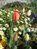 昨日の4月10日は、私がこのブログを始めてからちょうど2周年記念日でした前日まで覚えていたのに、当日になったらポカッと忘れてました( ̄▽ ̄;)ハッハッハあぁ、この2年の間に歳も一緒にとりましたね・・・私はこれを始める前に、別のブログをやっていたんだけど、その時は、かえでの話を書くのがイヤだったし、身元も絶対わからないように、コソコソとその頃の気持ちを綴っていました( ´艸`)毎日のかえでや家族とのことを書いて、自分の本当の気持ちを表現したい・・・今の状態を書くには、かえでが生まれた時からのことを書いて記録にしていこう!そう思って、前のブログは閉鎖して、新たにこちらを始めたんです。始めてから半年くらいは、かえでの小さい頃を思い出しながら綴って、だんだんと「現在」に追いついて、今はこうして毎日のいろんなことを書けるようになりました。だんだんと親しく心を許してお付き合いできる友達が増えて、思ってもみなかったオフ会をしたり、パンやお菓子などを送ったり送られたり・・とても楽しい毎日になりました。日頃の思いは、その辺で話すとすぐに噂になるもんだから(田舎だから^_^;)なかなかストレスもたまるでしょ。でもここでなら、自分の好きに書けるしね^^それにたくさんの人から意見をもらえる。いろんな情報交換が出来る。ネットは怖いと思っていた頃もあったけど(もちろん今も油断は出来ないけど)近くの親戚より遠くの他人・・・みたいな、そんなお付き合いですよね。会ったこともないのに、お互いの生活を知ってるし(*´∇`*)で、遠くに住んでると思ってた人が、意外と近かった!なんていう驚きもあるのが面白い。日記記入率、45.6%。2日に一回も書いてないけど、また自分の想いをコツコツと書いて、楽しいPCライフにしていきたいです~(*^^)vこの記入率、もし毎日書いたら、いつ50%になるかなぁ?と思って、以前毎日更新を頑張ったこともあったけど、すぐに挫折しちゃいました(≧∇≦)これからも、かえでのこと、家族のこと、パンやお菓子のこと、その他愚痴もいろいろ、書いていく予定です。やめようかな・・と思うことも時々あるけど、やっぱりこの場所がないと寂しいかも?継続することは大変でも、それなりに形として残るものがあり、何より私自身の力になっていると感じています!(^^)!これまで仲良くしてくださった皆様、本当にありがとうそんなわけで、今後ともひとつ、よろしくお願い致しまする(o^-')b今日のチューリップ