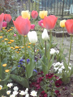 とっても長い間、パソコンを開かなかったような気がしていたけど、数えてみたら、たった6日でした ヾ(;´▽`A``アセアセ書こうと思っても、かえでが一緒だとなかなかゆっくり出来ないし、やれそうな時には、夫や娘が使っていたり・・・うまくいかないもんですね(;´д`)えっと、あれからちょっと風邪がひどくなってしまってね・・・以前、風邪で熱が下がらず咳もひどくて、それでも子供が小さい頃だったので、けっこう無理して動いてたんだよね。そして病院へ行ったら、「肺炎だから即入院!」と言われちゃったことがあったんです。幸い入院せずに自宅で安静にしていて、無事に治って良かったのですが、それ以来、ただの風邪だと思って無理してはいけないな~とすごく感じていたので、今回もひどくさせないように、早めに受診して自分なり安静にしていました。かえではやっぱり荒れていて、27日の離任式で学校へ行った後、そのまま寮へ行き、3日間ほど預かってもらいました。ショートステイやホームヘルプ、移動介護などのサービスは、在宅の場合だけに当てはまるものであって、うちの場合は、すでに入所しているため、そういうのが使えず、何かあったら今の施設へお願いするしかないんです・・・年度末ということもあって、断られるかと思ったんだけど、うちで困っている現状を伝えると、こころよく受け入れてくださいました^^それからの私は、熱があって身体も痛くて、咳は一晩中止まらないし、超苦しかったんだけど、頼まれていたイラストを、目をしょぼしょぼさせながら描いて、29日に間に合わせました。この時だけは安静にしてはいれなくて、集中して頑張ったんだよ~ん( ̄▽ ̄;)春休みなので「会社まで行ってる時間がない」と、前もって告げてあったので、社長と、アニメーションを作ってくれる外人の助っ人ラッドさんが、私の住んでる市まで来てくれて、ホテルのロビーで打ち合わせです。通訳をしてくれる社長が遅れたもんだから、日本語がほとんどわからないラッドさんと、英語がほとんどわからない私と、お互い片言の日本語と英語、そして身振り手振りで何とか会話して、イラストを見てもらい、「オ~!グ~ッ」と即OKをもらっちゃいました(*´∇`*)良かったです。ホッとして、力が抜けちゃいましたその後、風邪もだいぶ良くなり、二度目のかえでの帰宅です。ちょっとここでも大変ではあったけど、とりあえず二泊だけ自宅で過ごし、今日はまた寮へ戻りました。ちょっとね・・・うまく言えないんだけど、色々と考えちゃうことがたくさんあって、かえでだけでなく、私も春は何となく不安定になりやすいんだよねそんな不安定で苦しい毎日でも、どこかで気持ちの中に余裕を持っていたいと思い、外に出た時には、咲き始めたチューリップやその他色とりどりの花を眺め、プランターや鉢植えの花に水をやり、咲き終わった花を摘んだり、ちょこちょこと草を取ったりして、なるべく気持ちを上向きにしようと努力していました。あとはね、こないだ育てていたレーズン酵母の発酵エキスが完成したので、そのエキスから粉や水を足して酵母を作って、その酵母でパンを焼き始めました~(o^-')bこのことは、また明日のネタにしたいと思います( ´艸`)そんなわけで、またこれからもボチボチ日記を書いていくので、よろしくお願いしますね(^_-)-☆