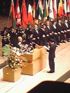 昨日7日は、林檎の大学の入学式でした。大学の入学式って親も行くの?っていう素朴な疑問があったんですが、合格通知と一緒に届いた案内には、ちゃんと親にも出席をお願いする文書が入っていて、お弁当も出るそうで、午後には学部ごとの集まりもあります。「成人」を18歳から・・・なんて話もあるけど、大学生になってもまだまだ親の出番は多いということでしょうかね?そんなわけで、大学の最寄り駅のすぐ近くにある大きなイベントホールで、盛大に、大学と大学院の入学式が行なわれました。新入生が2,200人とその保護者なので、ものすごい!人混みに酔って疲れました(+_+)その中でビックリしたのが、新入生宣誓の時。名前を呼ばれてステージに上がっていったのは、林檎と同じ高校、同じクラスだったタイちゃん(男子)ではありませんかー( ̄□ ̄;)!! 中学も同じで、たしか中1年と3年の時に一緒のクラスで、とってもご縁のある子なんです。そのタイちゃんがステージで堂々と学長さんのまえで宣誓をしています。 すげー!かっこいいぞ!タイちゃん(*´∇`*)なんか私まで嬉しくなっちゃいましたo(^▽^)o林檎は「農学部」なんですよ^^そして「応用生物化学科」っていう学科で、いかにも林檎らしいでしょ?( ´艸`)タイちゃんも同じ農学部で、学科は違うけど、一緒に推薦で合格したので、ほんとに私も嬉しかった。林檎も、男子の中で彼のことだけは「タイちゃん」と愛称で呼んでいるし。っていってもただの友達(これもただとも)ということになってます^^そんな感動の入学式のあと、子供はそのまま会場に残って、なにか説明があり、私達保護者はバスに揺られて大学へ行き、そこで学部ごとの援護会の総会がありました。お弁当を食べて、東北や北陸から来たというお母さん達と話をしたり、同じく県内から通学する子のお母さんと話したり。どの子もみんな、いろんな道を通ってここへ辿り着いたんだなぁ。みんな大変な受験を頑張ってえらかったね。と、すごく感じました。総会のあと、今度は学科ごとに館内の案内をしてもらい、研究室などを見せていただきました。学生さんたちは、白衣を着て実験をしています。カッコイイです~(*´∇`*)学科長の先生はお茶の何とかっていう難しい研究をしているそうで、あ~、お茶ならうちで作ってますわよ、とアピールしてこようと思ったけどやめときました。学年が上がるに連れて、毎日研究が続いて帰りが遅くなるとは聞いていたけど、そうなったら大学の近くに一人暮らしさせようと思います。本人もそのつもりでいるしね。面倒だなぁと思っていた午後の行事でしたが、とても有意義で、貴重な経験をさせていただけて良かったです。いつかは林檎も、こういう応用生物化学の最先端の技術を学んで、世の中の役に立つ人間になって社会に出てほしいとすごく思いました。そして、いつかは自閉症が治っちゃうようなお薬も開発してくれたら嬉しい♪( ´艸`)その前に、白衣がちゃんと林檎のサイズに合うかなぁ?一応「実験セット」の注文の中に白衣もあったけど、一番小さいサイズでもブカブカかも?お昼過ぎから雨が降り出してしまって、寒かったです(>_<)構内の桜がきれいに咲いていて、風が吹くたびに花びらがハラハラと舞い散り、坂を流れる雨水にのって、一緒に流れていくのも、なかなか風情がありました良い入学式でした。でも疲れました。新調した白のスーツは、卒業式と同じく、またもや雨に濡れました(T_T)でも林檎もスーツがよく似合ってて、いよいよほんとに大学生なんだね^^ウフ♪タイちゃんもカッコよかったけど、林檎もなかなかカッコイイぞ~(←親バカ)日曜日のピアノ発表会、そして昨日の入学式、そして今日はかえでの始業式。3日連続で神経を遣ったせいか、頭痛がひどくて、バ○ァリンのお世話に・・・(;´д`)バ○ァリンの半分はやさしさでできているそうなので、「半分だけ飲んでやさしくなってね」と林檎に言われました。私、充分やさしいでしょーが?゛(`ヘ´#) ↑おじいちゃんに撮ってもらったので、下半身が真ん中に来てました・・・( ̄▽ ̄;)