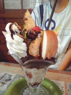 う゛う゛う゛・・・週末になると、何かと問題の起こる我が家です (ノ_-;)ハア…もう、こんなにも私が頑張っているっていうのに、夫も父も、ホントに気が利かない!10月からかえでが自宅に戻ってくることも考えて、その時に大丈夫なように、かえでが安定して落ち着いて過ごせるようにと、先の見通しを持って、私は自分なりに考えて、いろいろと行動しているのに・・・夫も父も、適当に、いい加減にやっていることが、全てを水の泡にしている(´□`。)こうしてほしい、とういうことは、これまでにもちゃんと話しているのに、その場限りで忘れてしまうし、あとで自分も困るのに、『その時だけ何とかなっていればいいや』的な考えなので、もうマジで頭に来ました!これでは家族の連携も成り立たないし、かえでに関して共通理解ができない。一度いい加減に適当にしてしまったことが、こだわりとなってしまうかえでなので、新しいことを始めたり、簡単に済ませようと楽な方法をとっていると、それが定着してしまう。だから、気をつけてほしいと、いつも念を押しているのに・・・_| ̄|○ガクッもう詳しく書く元気がないので(笑)、愚痴はその辺にしておきますが、そんなわけで、何処にもぶつけようのないこの怒りを、変なストレスにしたくないので、下の娘の桃と一緒に買い物に出かけて、帰りに二人でこっそりパフェを食べちゃいました~(*´∇`*) 桃がチョコパフェ。私はプリンパフェです(o^-')b写真を撮っていたら、桃が「まだあ?」と、ヨダレを垂らしてぼやく。そして二人でガツガツ食べました。美味しかったです~♪中のアイスクリームはキャラメル味で、更にクルミが入っていて、すごく美味しいんですよ。一個800円でした。二人で1600円!桃が「高いね、大丈夫?」なんて心配してたけど、うなぎを中国産にした分を、こちらに費やしました( ̄▽ ̄;)あ~、美味しく食べて、ストレス解消です。またこれで頑張るぞ!1600円なら安いもんさ^^