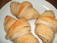 昨日はグチ日記だったので、今日はお口直しにパン日記です。パンを焼いていれば、気分は上々でござるよ(*´∇`*)まずは、クロワッサン♪初めて自家製酵母で作ってみました。(いつもはドライイースト)初めてのものは、とりあえずレシピ通りに・・・ こんなザックリした感じのクロワッサンが出来ました。普通のクロワッサンは洋菓子風ですが、これはすごく素朴な感じです。 昨夜の残りのポテトサラダと、クリスピーチキンをサンドして、今日のお昼ご飯です^_^;なかなかお腹にたまりました。それから、ごまパン♪生地を細長く伸ばして、くるっとひとむすび。出来上がったのを見て、林檎「なんかイヤらしいパンですこと( ´艸`)」なんで~?なんでイヤらしい?でも何となくわかるような・・・ というわけで、自家製酵母パン二種でした。 ◆◇◆◇◆◇◆◇◆◇かえでが食欲旺盛で、今月からお米の消費がものすごいです。お米だけに限らず、食費全般ももちろんそうだし、水の使用量も多くなってるし、トイレットペーパーの減り方も著しい・・・洗濯する量もすごい増えたし、私の仕事量も当然増えてます。でもまあ、これは喜ばしいことだと思って、というか、これが本来の我が家の姿だしね。かえでのお便秘も、なんとか解消されつつあるこの頃。今日は、学校でも家でもだいぶ落ち着いてきた感じがして、ちょっとホッとしてますかえでも頑張ってるし、私も頑張って運動しなくちゃ!←最近体重増加傾向・・・でも以前のように時間が取れなくて、ジムにはなかなか行けなくなってしまったので、せめて家で運動しよう・・と思い、半年前まで家でやっていたエクササイズ(ビリーよりちょっと軽めのヤツ)のDVDを探してたんだけど、どこにもないっ!たしかにここに置いといたはずなのに・・・と探しているのを林檎が見て、「また置き忘れてるだら~ ビリーより脳トレやった方がいいじゃんない?( ´艸`)」あ~そうですね(;´д`)そしてトイレに行って、その時笑っちゃったんだけど、ガードル(薄いパープルのお気に入り)の肌触りが何だかいつもと違うなぁと思っていたら、なんと裏にはいていたという事実( ̄□ ̄;)!! ううう~これってまた明日はけるかな?そんなのヤダよー(iДi)