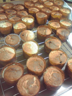 動かなくなっちゃったパソコン・・・カスタマーサービスセンターへ電話して聞いたら、もうこれはリカバリしないとダメだと言われ、仕方なくリカバリして、結局自分で初期設定からやり直しです。どっちみち通常の画面に戻らないんなら、入っていたデータが消えてもしょうがない。今日の午前中頑張ったおかげで、なんとか復旧しました。PCのお気に入りに入っていたのが消えちゃったので、友達のブログ(楽天以外の)とか、探しようがなくて困ってます。まりやんさ~ん、これ見てたらURL教えて~ ○●○●○●○●○●○●7日の午前中、学童保育所の保護者会の行事で、年に一回の茶話会がありました私は、この学童保育所を立ち上げた時のメンバーだったんだけど、かえでが昨年まで3年間入所していて、その間は学童保育が使えなかったので、なんだかちょっと気持ちも遠のいてしまっていて・・・茶話会にも、ここ数年は欠席していました。今年の茶話会のテーマは、「地域支援の利用体験談と今ほしいサービス」。少し前から気分がイマイチで、どうも行く気力がなくて、欠席しようかと思っていたんだけど・・・テーマの「支援サービス」っていったら、たぶん、うちが一番利用させてもらっているし、学童保育所を運営している社会福祉協議会のスタッフさんからも、「ぜひ体験談を話してほしい。 若いお母さんたちは何も知らない人が多いので、 こういう利用の仕方があるよって教えてあげて^^」 ということで、私たち家族が支援していただいているサービスのことが参考になるなら、みんなに話したいし、低学年の時からお世話になってきた学童の利用も、今年度で最後になるし、私もほかのサービスについて知りたいし・・・そんないろんな想いがあって、出かけることにしました。お茶菓子も経費から出るはずだけど、ここは先輩母が、得意な手作りお菓子を持っていくしかないら~♪と思い立って、前夜にマフィンを40個焼きました~~( ´ ▽ ` )ノバナナをつぶしてラム酒を混ぜたものと、カリカリに焼いたクルミ、それにチョコチップを入れた、しっとり甘々の食べ応えのあるマフィンです(*´∇`*) 13個ずつを3回に分けて焼いたので、全部が終わったら11時でした(;´д`)桃とかえでが面白がってまぜまぜを手伝ってくれたので、少し楽にできましたが・・死にそうに疲れました。冷めてからラッピング。バザーを思い出す量です( ̄▽ ̄;) で、肝心の茶話会。3つのグループに分かれて話をしたんだけど、一人ずつどんなサービスを使っているかを話していくうちに、時間切れで終わっちゃって、進行役の方の時間配分とか、今回のテーマの大事なポイントとか、そういったことがズレまくりだったので、正直言って、かなりイライラしてしまった私でした(-_-;)それでも、うちが使っているサービスのことはちゃんと話すことができて、時間がなくてそれ以上突っ込んだ話まではいかなかった分、終わってから、個人的にいろいろ聞いてくるお母さんも数人いたので、そのまましばらく外で話し込みました。サービスに関しては、特に困っていることがなければ使わないで済むことだけど、どっちみち将来は、家族以外の方の支援を必要とする子供たちであるわけだし、親以外の人と過ごす時間も、生きていく力をつけるための大切な学習のひとつであると思うのです。それに、どうしてもお母さんの関わる時間が多いので、その軽減という意味もある(レスパイトね^^)。中には、サービスの利用を頑なに拒むお母さんもいて、(学童は、夏休みだけ3日くらい使っているらしい)人の手を借りるのが煩わしいそうで、事業所と契約するのが面倒。他人に子供のことを説明するのも面倒。利用するとお金がかかるから、って言うの。とにかくそのお母さん自身が、対人関係もろもろに問題あり?って感じでした・・親が元気なうちは、子供の面倒もきちんと見れるけど、もし自分が怪我をしたり、病気で入院することにでもなったら、すぐに対応できなくなってしまう。困るのは、その子供さんなんだよ。うちは、ご存知のように、いっぱい利用させてもらっています^^人に頼むことは、たしかに抵抗もあるし、後ろめたさも感じることがあるけど、いつかは、親の元から自立していかなくてはならない。自立できない子でも、否応なく離れなくてはならない時が来るわけで・・・何かとこだわりを作りやすいうちの息子、なるべくたくさんの人と関わり、家族と過ごすことだけのワンパターンだけでなく、いろんな場面に強くなれるように、サービスを使って支援していただいています^^私も、ここまでの気持ちになるには、かなり葛藤もあったし、すごく迷うこともあったんだけど、もう開き直って前向きに!ですね。という私の思いを、そのサービス利用を頑なに拒むお母さんに話しました。もちろん当て付けではなく、私の場合はこうしてる、こうしないと自分が壊れるから、ってことで。帰宅してから、そのお母さん、「