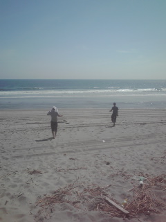 昨夜、不思議宇宙人のかえでが、また急に、「うみ」と言い出しました( ̄▽ ̄;)海に行きたいのかな?たぶん違うと思うけど(^o^;)また何かフラッシュバックして思い出してるのかな(笑)海と言われて、私もかえでに海を見せてあげたくなって、あ、もちろん、海水浴にも行ったことはありますよ。おそるおそる入っていたけど、もうあれから何年も経つし・・・じゃ、明日はちょこっと海までドライブして、海水浴とまでは行かないけど、波打ち際で少し「海」を感じてこようか!と思い、今日の午後に行く計画を立てていました^^昼前、早番の夫が、半日で仕事を終えて帰ってきました( ̄□ ̄;)!!ウゲー!と思って、「なんで帰ってきたの?」と聞くと、仕事が暇なので帰ってきたとか。不景気って困りますねえ(>_<)海に行く話をすると、「海よりプールでいいじゃん」と言います。海よりプールがいいのは、かえでじゃなくて夫です。かえでも行きたいかわからないけど、「うみ」って言ったから、「うみ」と「海」を関連付けてあげたいという私の思いは、一瞬にして蹴られました(;´Д`)でも、今日を逃すと、夏休み中は行けるチャンスがないので、「行ってみようよ」と、しつこく言うと、夫も「うみ」行きに賛成してくれて、3人でドライブがてら、海を見に行くことになりました。車で約30分ほど走ると、海岸に着きます(*´∇`*)ほんとは遊泳禁止のところだったけど、泳ぐわけじゃないので、熱い砂浜を歩いて、波が来るところまでやってきました。 左 かえで 右 ダンナ でもでも、臆病なかえでは、波が怖いのか、ヒーヒーわめくばかりで、入ろうとしません。夫が無理やり手を引いて、膝が浸かるくらいのところまで連れて行こうとしますが、さらに抵抗して、「くるま」と何度も言うので、大嫌いになる前に諦めて帰ることに…(´□`。)その後、いつものプールに行ったんですが、これもいつもと違うパターンだったせいか、10分くらいで「おわり!」と言い出して、これまた中途半端で帰ることに・・・(ToT)なんか、経験を増やしてたくさんの楽しみを作ってあげたいという私の思いは、いつも空回りして、裏目に出るような感じです。頑固で重度で大変な息子・・・やっぱりいつもの安心するパターンから、脱することができないのね(;´Д`)普通の平凡な暮らしが一番幸せなかえででした・・・でも、少しでも「海」に触れられて良かったよね♪手についた海水を舐めていたけど、しょっぱかったね(笑)と、私だけ満足♪(^o^;) ◆◇◆◇◆◇◆◇◆◇実は、明日から一泊で、ちょっとお出掛けの予定。林檎が、以前から「伊勢神宮」へ行きたいと言っていて、お盆の混雑も終わった今週末に、夫、林檎、桃、私の4人で、お伊勢参りに出掛けることになりました(*´∇`*)明日は、かえでが午後から学童保育が入っていて、夕方からは、寮へお泊りの日なので、学童へ送りながら、私たちも出発して、学童から寮へは、おじいちゃんに送迎を頼んで、土曜日の夜に帰宅予定です。かえでの宿泊に合わせるので、なんとも慌しいんですが、時間より質で勝負!ってことで、濃厚かつ強行な旅行になりそう( ̄▽ ̄;)そんなわけで、明日は朝一でかえでの床屋さん。その後、荷作りして(私は長女なので荷物が多い)、おじいちゃんの夕食の準備やら明日のご飯を冷凍したり、生ゴミを処分したり、かえでの泊まりの荷物を用意したり、洗濯を早くやり終えて、早く干して、行く前には取り込んでたたんで片付けもして、ってな感じで、大忙しなので、今夜は真面目に早く寝るので訪問できませんが・・・ごめんなさい<m(__)m>携帯から読み逃げしちゃうけど、許してね。ではでは( ´ ▽ ` )ノ