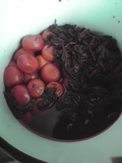 夏の「土用」というのは、立秋の前18日間を言います。この間に、梅干しを干したかったんだけど(土用干し)、なんと今日が立秋でして( ̄□ ̄;)!!夏らしい日も少ないまま、もう暦の上では秋だなんて・・・(´□`。)ということで、やっとお天気が続きそうな気配なので、今日は、念願の梅の土用干しをすることができました(*´∇`*)カビが生えることもなく、きれいな梅漬けです。 これを大きなザルに、広げて干します。このザルも、母が生前使っていたもので、すっと物置に入っていたのを、きれいに洗って使いました。 一粒がけっこう大きいです。でも干したらしぼんで、少し小さくなるのかな?ああ、ずっと気になっていたことが一つ片付いて、とてもすっきり♪お天道様ってありがたい(*´∇`*)どうか、月曜日まで雨降らないでよ(。-人-。)