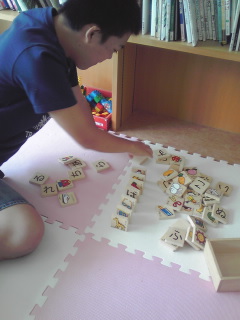 今日は月に一度の、かえでの精神科定期通院の日でした。主治医が2年前にこじんまりと診療所を開業して、通うのが楽になりました(o^-')b待合室はとても静かです。児童だけでなく、大人の方も来るので、混んでいる時に、かえでが大声や奇声を出すと、とっても迷惑になるし(-_-;)待ち時間が長いのも、あとで不安定になる原因になったりで、ここ3ヶ月くらいは、かえでが学校へ行った後、私一人で行って一ヶ月の様子を話し、診察と薬を処方してもらっています。でも、今月は夏休みなので、空いてるといいなぁと思いながら、かえでも一緒に、先生に顔を見せに行きながらの診察になりました。今日はなぜかとても空いています。わーい♪駐車場に車も少なくて、もちろん待合室にもほとんど人がいなかったので、ホッとしてしまいました(*´∇`*)待合室に入ると、かえでが最初にすることは、絵本の棚から、「となりのトトロ」と「魔女の宅急便」の絵本を出してくることです(^o^;)アニメと同じ絵(セル画)を使っていて、吹き出しとかでなく、お話が書かれている大きめな厚い本です。毎日観ているアニメと同じ絵があるので、毎回食い入るように見つめています。こちらとしては、家でもアニメを見て、ここでも同じ絵本を見て飽きない?と思うのですが。今日は、その2冊を見終わると、箱に入っていた「ひらがな積み木」を出してきました。 混んでないので早く呼ばれるかも?と思って、これを片付ける時間を考えると、あまり散らかしてほしくないなぁと思っていましたが、かえではこれを一個ずつ並べ始めました。こうして並べて、ドミノ倒しをするのが、すごくワクワクで楽しいんです。 これでも18歳(^o^;)こういう遊びは大好きだけど、いつもは小さい子がいて、なかなかできないので、今日はちょっとゆっくりできそう。でもすぐに呼ばれそう(´□`。)一回だけでも成功させてあげたい。 だんだんたくさん並んできました♪ いつ呼ばれるか、いつうっかり倒れやしないか、私はそんなことでハラハラ・・・(笑)そこへ、「かえでさ~ん、診察室へどうぞ~」自分の名前が聞こえたので、顔をあげて私の方を見た瞬間・・・( ̄□ ̄;)!! あららららら~~~・・・倒れちゃいました(;´▽`A``残念!でも怒ることなく、倒れていく積み木を見つめ、嬉しそうでした。その後、自分で「おかたづけ」と言って、きちんと箱に積み木を並べて、それも全部向きがきっちり同じで、ああ、しっかり自閉症って感じ( ̄▽ ̄;)並べるのは根気が必要で、じっくり倒れないようにひとつずつきれいに並べて・・・でも倒れる時は早いよね。あっ!と思った瞬間には、ダラダラダラダラ~~っと一気に行ってしまう・・・まるで坂道を転げ落ちるかのごとく、某芸能人の人生のように・・・(+_+)診察室に入ると、またまた先生のデスクに、たくさんの組み木や、木のパズルなどがあります。これを必ずいじるのも、かえでのお決まりです。中にはすごく複雑なパズルもあって、一度出してしまうとなかなか戻せないので、かえでがそれを触ると、ちょっと嫌そうな顔をしています(;´Д`)先生もそこに置かなきゃいいのに(笑)でも、かえでは、こういった幾何的なものはすごく得意で、難しいものも、わりと簡単に元に戻してしまうのです。自閉症などの発達障害の人によく見られるサバン症候群という天才的な脳みたいなものが、うまくいけば開くのかな?なんて考えた時期もありましたが、ひらめきの右脳は発達していても、左脳がちょっと無理っぽいので、未開花のまま、終わってしまいそう・・・(^o^;)というわけで、特に問題なく、普通の定期診察でしたo(^▽^)o午後は、台風の影響で雨がパラパラしてるけど、プールにでも連れて行ってこようと思います。どうせ濡れるし、構わないでしょ( ´艸`)こんなお天気のせいか、私はまた頭痛です~~(>_<)