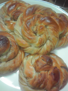 高校のときの同級生のちーちゃんが、先週末から帰省していて、今日の午後なら、かえでがショートステイだったので、その時間なら都合がつくよ~♪ということで、、一年ぶりに会う約束をしていました。でも、昨日メールが来て、急に帰らないといけない用事ができたらしく・・・( ̄□ ̄;)!!残念ながら、今日は予定していた午後の時間がぽっかり空いてしまいました(ToT)なので、今日は久々に2種類の折込シートパンを焼いてみました。ほんとは、ちーちゃんへのお土産のつもりで、午前中に焼こうと思ってたパンなんだけどね(^o^;) コーヒーシートと、バニラクリームシートです。いつも、折り込みの時の粉は、中力粉を使うのだけど、うっかり買い忘れていたので、今日は強力粉と薄力粉を8:2の割合で使ってみました。でも、水分量を間違えたのか、暑い時期で生地がダレるせいか、なんかベタベタで、こねる器械(フードプロセッサー)の心棒に生地が絡まったり、全然うまくいきません(>_<)キー!あんまり良くない状態の生地になっちゃって、これが、誰かにあげるパンでなく、自己消費で良かった・・・と思ったのでありました。それでも焼き上がってみると、かなり普通にできたので、最初がうまくなくても、最後にはちゃんとまとめるって、案外、私の得意とするところなのだ、と思ったわけです( ̄▽ ̄;)帳じりを合わせるとかもね(笑)あと、リンゴと豆乳のゼリーも作りました^^ 調整豆乳と、リンゴジュース(クリアタイプ)のゼリーを別々に作って、リンゴのゼリーをクラッシュしてのせました。これも毎年、夏のおやつの定番になってます(*´∇`*)豆乳が苦手な人も多そうですが、これはリンゴの甘酸っぱさとマッチして、美味しく食べられますよ~( ´ ▽ ` )ノ参考までにレシピを。調整豆乳 300ccグラニュー糖 大3ゼラチン 1袋(5g)お湯 大3リンゴジュース(クリア) 300ccグラニュー糖 大3ゼラチン 1袋(5g)お湯 大31. 小さい器に、ゼラチンとお湯を入れて混ぜておきます。2. お鍋に調整豆乳とグラニュー糖を入れ、砂糖が溶けるまで温めます。3. 溶けたら、1のゼラチンを入れて混ぜます(沸騰させないでね)4. 器に注いで、荒熱が取れたら冷蔵庫で冷やして固めます。リンゴのゼリーも同じように作ります。別の大きめな器に流しいれて、冷やして固めます。両方固まったら、リンゴゼリーをフォークで砕いて、豆乳ゼリーの上にのせます。キラキラして、見た目も涼しげ~(*´∇`*)お試しくださいね(o^-')b 今日は、とってもイヤな気分になることがあって、ちーちゃんに会えなかった残念さと合わさって、なんかすごく凹んでいました。パン生地も失敗したし、かえでも大きな声をずっと出していてイライラさせられるし、お天気が良いのに頭痛がして、鎮痛剤を飲んでも痛みが引かないし、なんだか泣きたくなるような一日でございました(;´Д`)でも、友達が焼いてくれたカーペンターズのCDを聴いていたら、夕方からは気分が持ち直して、また明日からぼちぼちやろう・・・と思えるようになりました(;´▽`A`` ↑聞いてるといつも思うのだけど、発音がものすごくきれい。 なめらかな感じで、それだけで癒される明日は、かえでと一緒にまた「ロデオ」をやりに行ってきます~ パッパカパ~