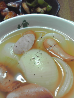 昨夜、かえでの血だらけ事件のあと、洗い物を済ませて、最後にシンクを拭き上げていると、急に、右手の人差し指の先を違和感が襲いました。なんだろう?と思って見てみると、手のひら側の第一関節のあたりが、内出血したような色になっていて、見る見るうちに、その周辺が腫れてきて、指先がパンパンになってしまいましたー( ̄□ ̄;)!!な、何だこれはっ!腫れているので、第一関節を曲げると痛みます。特にすごい刺激を与えたわけでもないのに、いきなり指先の血管が切れたのかもしれません・・・これって、大丈夫なんでしょうか。悪い病気の前兆?毛細血管が切れやすくなってるとか?なんか、だんだんと指先が冷たくなってくるし、痛みも引かない。そして、人差し指が使えないというのが、すごく不便でした。それでもなんとか家事を済ませ、明日には良くなってるかな?と思って寝たんですが、今朝もまだ痛くて曲がらないし、大して変わりがない状態。人差し指が使えないと、お箸もうまく持てないし、ペンも握れない。ゆえに、お弁当を詰めるのが大変。連絡ノートの字がめちゃくちゃ(笑)内出血した血は、昨夜より広がっていて、ヘンな色になっています(>_<)今日は、おじいちゃんの畑仕事の手伝いをすることになっていて、あの重いお茶刈り機(ならし用)を持てるだろうか?と、かなり不安~・・・「指がこんなんなっちゃった・・・」 と、おじいちゃんに見せたら、「歳をとると、そういうのってよくある」「(よくあるのかー?)・・・(´□`。)」というわけで、歳のせいにされて、相変わらず人使いの荒いじーさんで、早お昼のあと、かえでの迎えの時間まで、たっぷりならし刈りをやりました(;´Д`)痛いなんて言ってられなかったので、人差し指を立てて、腕に力を入れて、なんとか終わらせました。終わってから指を見ると、内出血が、第二関節から上のほう全部に広がっていて、ますます気持ち悪い指になってます・・・(-_-;)そして、まだ腫れて冷たくなっていて痛みもあります。ああ、指一本でも、人間の身体って精密にできているもんですね。不具合があると、そこにちゃんと役割があるんだというのがわかって、自分の身体が愛しくなります(*´∇`*)最近なぜかお便Pが良くなって、すこぶる快腸だし、そういえば頭痛もないなあ♪って感じで、血行が良くなっているのが実感できるのだけどね^^これがもし、指先じゃなくて、脳の血管だったら・・・と思うと、生きた心地がしませんでした。明日の朝もちゃんと生きてるだろうか?なんてね(^o^;)というわけで、いつ終わりが来るかわからないような気分になってしまって、命のあるうちに、やりたいこと、やっておかなくてはならないことを、先延ばしにしないように、片付けていかなくちゃ・・・と思ったわけです。夫にこの指を見せて、「私、死んじゃうかもしれんに・・・美人薄命っていうじゃんねえ(*´∇`*)」と言ったら、「だいたい本当に美人だったら、自分で言わんら。 お前みたいなチビデブブスは、 絶対長生きするに決まってる(≧∇≦)」くそー!絶対あんたより長生きしてやるからねっ!と、改めて心に誓った私なのでした( ̄へ  ̄ 凸今朝は、荷物が多いので自転車で行けないという桃を、かえでを送る時に一緒に乗せて行きました。で、今日は部活がないそうで、かえでを迎えに行って帰る途中で、「終わったから迎えに来て」というメールが来たので、「そのまま帰りに寄るよ~( ´ ▽ ` )ノ」と、返信したのに、いろいろと考え事をしていたせいか、なんと、うっかり桃を忘れて家まで帰ってしまいました( ̄▽ ̄;)家に着いて、かえでを車から降ろす時、はっ!と気が付き、あわてて桃を迎えに行きました。「ごめんよ~!遅くなって・・・」と、謝ると、「もしかして忘れてたじゃないよね?」「はっはっは!ごめん、忘れて帰った」「ううっ・・・泣いてないもんっ! お母さん、脳の血管切れてるだら」あああああ、この時期にそれを言うなー!(´□`。)でした。平均寿命は延びているけど、やりたいことができる「命」はもっと短い。いろんなこと、たくさんやりたいと思います^^血液サラサラにするために、今夜は「玉ねぎたっぷりスープ」♪小玉ねぎ、全部で10個使った(笑) さて、明日もお茶刈り、がんばるぞ~!(≧∇≦)
