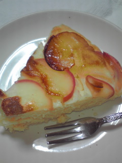 先日シロップで煮ておいたリンゴを使って、アップルパイを作りました。 これ、毎年作っているんですが、皮付きのままスライスしたリンゴを、シロップでサッと煮て、一晩そのシロップに漬け込んでおくと、とってもきれいなピンク色になって、まるで薔薇の花びらのよう・・・(*´∇`*)パイシートを伸ばして、このリンゴをきれいに並べると、 こんなふうに、オープンアップルパイの出来上がり♪そして、友達とちょっと会う約束があったので、すぐに食べられるように、小さく作ってみました。 直径が7cmくらいのミニパイです。それにリンゴを花のように並べてみました(*´∇`*)シャキシャキとしたリンゴの食感がいいです。 これを作っている時、おじいちゃんがリンゴのボールを見ていて、「こりゃあなんだ?ハムか?」わ~。出た出た。絶対何か言うと思った(≧∇≦)まさかハムとはね(笑)さすがおじいちゃん!私 「ハムじゃないよ。これリンゴだよ。 皮付きで煮ると、こんなきれいな色になるだに。すごいら」じい「ほぉぉ、リンゴか?ハムじゃないだか。へえええ」その会話を聞いていた林檎が、1人で爆笑しているもんだから、「何がおかしいの?」と聞くと、「じーじの『ハム』もウケたけど、 お母さんの『きれいな色になるだに』もおかしかった( ̄▽ ̄;)」というわけで、みんなアップルパイが大好きなのでしたo(^▽^)o