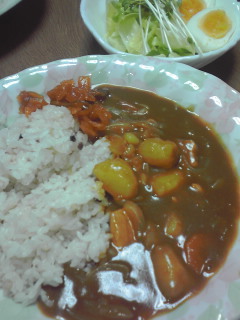 昨日の金曜日は、いつものようにかえでは寮へお泊りです。下校後、そのまま送っていきました。行くとまず、着替えをします。着替える部屋は、かえでが入所していた時に居室にしていた部屋で、かえでがショートステイで泊まりに行く日は、今も空けてくれてあるので、かえでも迷わずこの部屋へ行き、すぐに着替えをします。かえでが着替えている間に、私は持ってきた荷物を職員さんに預けて、持ち物の説明や、かえでの体調などを話し、書類にハンコを押したりして帰ります。かえでが着替えたと思われる頃、部屋へ行ってみると、なんと、枕の皮生地を引きちぎって破ってしまっていて、中から埃っぽい綿がたくさん出てしまって、もうすごいことになっていました(´□`。)びっくりして、すぐに掃除機を借りてきて片付けましたが、職員さんの話では、かえでは、いつもこの手の枕を破ってしまうんだそうで、これまでにも何度か同様のことがあったと言いますわ~・・・申し訳ありませんでも、だったら、もっと早く言ってほしかったなあ・・・入所していた頃、落ち着いている時ばかりではなかったので、何かにつけ、不安定になると、本を破ったり、シーツを破ったり、そうやって安定を図っていることもありました。でも、家に戻ってきて早一年、最近なんてすごく落ち着いていたので、まさか枕をこんなふうに破ってしまうなんて思わなくて、よくやってると聞いて、すごくショックでした。ここへ来ると、こだわりで、同じような枕をすべて破っていたこと、職員さんがそれを見て、かえでの枕を取り上げ、ショートステイの時は、いつも枕をしないで寝ていたこと、枕自体が、すごく古臭い感じのを使っていること、そういう一連の出来事を、何もこちらに報告されてなかったこと、そんなことが一度にわかって、なんか落ち込んでしまいました・・・家でも枕をしないで寝ている、かえでは枕をしないでも平気だと思われているみたいです。でも、家ではちゃんと枕をしているし、低反発のウレタンの枕だから、こんなふうに破ったりちぎったりしないもん・・・枕、かえでは必要ですよ。なんだか申し訳ないのと、哀れなのと、悔しい気持ちとでいっぱいで、次回から、かえで専用の枕を持参することにしました(-_-;)帰り際に、「かえでさんは、卒業したらどうするんですか? どこか日中活動ができる場所がほしいですね。 親御さんでそういう運動とかしてないんですか?」と聞かれ、つい最近、現場実習に行っていて、卒業後は、できればそこにお世話になりたいということを話しましたが、これでも私だって、精一杯考えてるんだよ・・・ショックを受けたところに、畳み掛けるように卒後のことを言われて、どうすることもできずに、何も具体的に答えられないまま、帰りました。昨日は、また桃が夕食を作ってくれることになっていたので、買い物を済ませて、急いで帰ります。1時間くらいでできる料理、第3回目は、定番のカレーライスです。簡単と言えば簡単ですが、いつも私の手伝いだけで、全部を桃が自分で作ることもなかったので、野菜を洗うところから、今日はすべてお任せすることに。私は夜に会合があったので、ショックから立ち直る時間がほしくて、洗濯物をたたみ、あちこち片づけをして、カレーができるのを待ちました。桃が頑張って、1人でカレーライスを作ってくれました。 シンプルなカレーだけど、コクがあって美味しかったです。(こく○ろカレーだから?いや、いろいろブレンドしているから(笑))私は、会合の時間が迫っていて時間的にも忙しくて、さっきのこともあってか、なんだか胸がいっぱいで、せっかく美味しく作ってくれたカレーも、食べ切れませんでした・・・(ToT)ゴメンネ~その代わり、今日のお昼に、一晩置いた熟カレーを食べましたです♪ショートステイ、すっかり寮におんぶに抱っこで、お任せ状態でした。ちょっと見直してみようという、いいきっかけになったかも?今の生活から、かえでと離れるショートステイの時間を無くすのは、ちょっと私にとってはしんどいことなので、その枠の中で、うまい方法を考えていこうと思います。会合から戻ると、気持ちもすっかり上がっていて、大きく凹みそうだったけど、なんとか持ちこたえることができたかな。なんだかんだ言っても、ちょっとした楽しいことがあると、すぐに復活できることが増えて、私もだいぶ強くなったような気がする♪まあ、とりあえず枕やシーツを破らないような工夫をして、やっぱりサービスを利用しながら、前向きに進むしかない・・・ですね(^o^;)さてさて今夜は、仲良しの友達数人と飲み会です(*´∇`*)今日と明日は、健康診断前の検便採取日になっているので、そっちに気をとられて、飲み会のことは、うっかり忘れていました( ̄▽ ̄;)ハッハッハって、今日はまだ出てないぞ~(´□`。)最近、食べる量が少ないから、ダメかなあ?