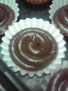 お祭りも終わって、今夜はたすき拭い(慰労会)です。毎年、私も出席しているのだけど、今年は夫が一人で行きました。かえでがいるので、たぶんこれからも行けそうにありませんが、地区の人たちと、2日間楽しくお祭りを過ごすことができたので、満足満足!という感じです。少子化が問題になっていますが、この過疎な「村」も、ここ3~4年はベビーラッシュでして、小さい子供たちがチョロチョロとたくさんいて、若いママに代わってお守りをすることも多く、孫を抱っこしているような気分でした(*´∇`*)さて、今夜は夫がいないので、ちょっと楽だったりする夕飯を済ませて、食器を洗っていました。居間で、かえでと桃と林檎がテレビを観ていたのだけど、急に林檎が、「うひゃー!\(◎o◎)/ かえでが血だらけになってる~~!」と叫ぶので、慌てて行くと、かえでの指が血だらけになっていました( ̄□ ̄;)!!カーペットや洋服にも付いています(+_+)先日の日記にも書いたように、爪を噛んだり、さかむけを取ってしまったりで、いつも指先からは血がにじんでいるような状態だし、またどこかのかさぶたをはがしたのかも?と思って、あちこち、血の出所を探してみたけど、どこからも出血していません・・・そしたら、なんと、それは口の中からでした!これも前に書きましたが、唇の内側を噛んでしまうことがあります。この時以上に、ひどく噛んでいました。今回は、口の付け根(ってヘンな言い方)というか、口角のすぐ内側というか、そのあたりのようです。もう、あまりにもひどくて、その様子を描写する言葉を並べるのも辛いくらい…(ToT)桃なんて、「これは『グロ画像』よりひどい(||゚Д゚)ヒィィィ!」私たちが困ったような泣きそうな顔をして、やめさせようとすると、かえってかえでが不安になったり、怒って向かってきたりするので、とりあえず、「血が付いているところを拭こうね^^」と言って、ティッシュで拭き取りました。それでも噛むのを止めそうにないので、可哀想だけど、気が済むまでやらせておくしかありませんでした(>_<)散々と痛めつけたあと、特に痛がりもせず、普通にしていましたが(Mか?(笑))なんかいろいろと大変なやっちゃなぁと、またまた悩みが増えつつあるこの頃です。早い時間に帰宅した夫に、そのことを話すと、「ふ~ん・・・」って、それだけっすか?(-_-;) ◆◇◆◇◆◇◆◇◆◇で、桃が友達の誕生日に、またお菓子を焼いて持っていくそうで、昼間、一緒にチョコのマドレーヌの生地を作っておいて、夕食後に焼く予定でいたのだけど、かえでの血だらけ事件で、うっかり忘れていました(iДi)かえでがお風呂を出た後に気がつき(って、桃が先に気づけよっ!)慌ててオーブンを予熱して焼きました♪量が均一になるように、絞り出し袋に入れて絞ったら・・・この色、この形、非常に怪しい物体です(-_-;)なんか、これってやばいら~・・・食べ物か? でも、焼いたらちゃんと「チョコ」の香りですよ~(笑)