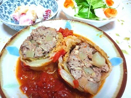 今朝、歯みがきをしようと、音波歯ぶらしをスイッチオン♪一回押すと、強で、もう一回押すと、弱になります。強では強すぎて痛いので、いつも弱でやるんですが、なんとなく、歯がネバネバしてる気がして、今日はしっかり磨こう!と思い、強で、ブィーーーーーンそしたら、歯ぐきから血が噴き出して・・・ (||゚Д゚)ヒィィィ! と、叫んで、倒れてしまう夢を見ました( ̄▽ ̄;)ああ、怖かったなあ。というわけで、今日は、私が歯医者さん通院です。予約が入っていたから、そんな夢を見たのかも~~(^_^;)半年に一回、歯の検査やお掃除をしてもらっていますが、いつも、かえでがお世話になっているので、自分の歯を診てもらうのが、ヘンな気分(笑)私、歯はけっこう丈夫だと思っています。今日も、軽い気持ちで歯医者さんへ行きました。そしたら、上の奥歯の見えない部分に少しだけ黒くなったところがあるようで、たぶん虫歯でしょう・・・って(;´Д`)歯垢とか、歯石とか、歯ぐきの状態の心配はしていたけど、虫歯のことはあまり考えてなかった私。ちょっとショックでしたぁ・・虫歯の治療なんて、何年ぶりだろう?もしかしたら、子供の頃にやったきりかも?今日は、午後の診察が始まってすぐの時間(14時半)だったけど、今から治療を始めると、かえでの迎えに間に合わなくなりそうなので、来週、日を改めて、午前中からお願いすることに。黒いところを削って、型を取って、そこに金属を詰めます・・・とのこと。今は痛みは出てないけど、放っておけば、どんどん大きくなって大変になるので、できれば今のうちに治療した方が・・って、当たり前ですね。早期発見、早期治療。そのために、半年ごとに歯医者へ行っているんだから。私、歯医者さんが好きです。あ、お掃除とかしてもらうのが好きってことだよ(^_^;)なので、虫歯の治療も、その延長くらいに思っているけど、いざ、削ってなんちゃら・・と話を聞いたあと、お掃除してもらって、血が出たりするのを見たら(うがいで)だんだん怖くなってきてしまった・・(-_-;)私もビビリくんであります。まあ、私はもちろん治療はするけど、もし、かえでが虫歯になったら、と思うと(>_<)あの、ギュイーーーーーンな機械で削ったり、型を取ったり、詰めたり・・できるんだろうか?と、非常に不安。なので、とにかく定期的に通院して、早いうちに治療するしかないんだろうなあ・・体(内臓)の健康だけでなく、歯も気をつけないとねー! ************* 最近、手抜きな夕飯が多かったので、今日はちょっと凝ったもの(笑)を作ろうと、ロールキャベツにしてみました^^合びき肉に、マッシュルームやじゃがいもなど、いっぱい入れて、大きく巻いて、ドーンと!食べ応えありました。画像・・・撮ったけど、きれいに盛れなかったですぅ(^_^;)トマト水煮缶を使って煮たので、トマト嫌いな夫とかえでが食べないかも?と思ったら、意外と平気で食べてくれました^^よーし、もっとどんどんトマト使うぞー(笑)