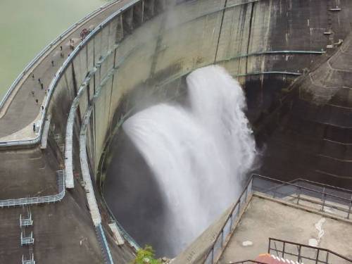 旅行2日目は、いよいよ立山黒部アルペンルートです。9月7日(土)朝7時に、朝食をいただき、(これまた豪華な朝ご飯)7時半過ぎにホテルを出発。ホテルの駐車場でビックリしたことが・・(@_@;)ホテルの屋根の低いところで、ガタガタッと音がして、なにやら黒い塊が動いたのが見えました。な、なんと、それは野生のサル!!ひゃーーーーっ\(◎o◎)/!驚いちゃって、動けなかった・・・初めて見たかも。野生のサルって!というハプニングがあったけど、無事に出発。20分ほどで、アルペンルート長野側の入り口である、扇沢駅に到着。この日は、お天気下り坂・・今にも降ってきそうですが、それでも、一番最初に行く黒部ダムだけでも・・と思い、とりあえず、黒部ダムまでの往復チケットを購入。その後は、お天気しだいで考えようということになり、まずは、黒部ダムへ行く、トロリーバスへ乗ります。トンネルの中を走るので、排気ガスの出ない電気のバス。このトンネルは黒部ダム建設時に、資材搬送用トンネルとして掘削されました。途中に富山・長野県境と、難工事の末突破した破砕帯があります。これが、映画「黒部の太陽」の舞台になった場所ですね。その破砕帯のところは、青いライトがついていて、「ここです!」というのがわかります。その破砕帯の80m、普通なら10日で工事が進むはずが、なんと7ヶ月も要したそうです。多くの人の、血と汗と涙の・・・って、言うだけなら簡単ですが50年も前のことです。すごい技術と労力だったことを思うとなんだか胸がいっぱいになります・・ トロリーバスに15分ほど乗って、明るい所に出ると・・・そこは、あの黒部湖と、黒部ダム!!ドバア――――――ッ ダムの上のアーチ型のところにポツポツしているのが、人です。もう・・とにかく、大迫力!最初に、一番高い展望台に上り(200段以上の階段)そこから見た時の感動は、たぶん一生忘れないと思います(*´▽`*)すごい勢いで、水が放出されています。お天気がよければ、虹も見れただろうけど・・ひととおり見て回り、アーチ型のところを向こうに歩いていき、ダムの真ん中まで来ました。真上から見ると、水けむりがすごい!てか、下が見えない。そのまま歩いていくと、次の駅、黒部湖駅です。ここから、ケーブルカーに乗ります。最大傾斜31度だそうで、平行四辺形?のケーブルカーに乗って、そのままの角度で、暗いトンネルの中を、ひたすら上へ・・と言っても、5分くらいで次の駅へ到着。大宮から来たという、年配のおじさんグループが面白かった。(「あんたどこから?」って気安く聞いてくる(笑)) というわけで、ケーブルカーで、黒部平まで来ました。ここからは、ロープウェイです。このロープウェイ、間に支柱がなく、一本のロープでつないでいるらしく、日本一長いロープウェイだそうです。切れたら怖い~~(+o+)ロープウェイで、大観峰駅へ着き、そんでもって、またトロリーバスこのトロリーバス、日本で最高所(2,450m)を走るトロリーバスだそうです。ここから、室堂(むろどう)へ向かいます。そこが、私たちの行く最終地点。富山側へ通り抜けないで、そこで往復するコースです。 と書いていたら、また字数オーバーしちゃうので、続きはまた明日。すみません。自己満足で書きます<(_ _)>**************** 一昨日の月曜日、息子の定期通院だったんですが、すっかり頭から抜けていて・・予約を取り直して、今日、行ってきました。昨夜は、頭痛やら肩こりやらで調子も悪く・・午後に、こないだの整体へ行ってきました。やさしくモミモミしてもらって、だいぶ復活です(^_^;)