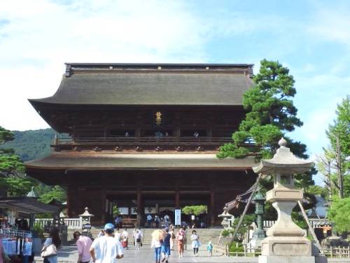 そのうち、旅行へ行ったことも忘れるくらいボケちゃうと困るので(笑)覚えているうちに、書きとめておこうと思います(^_^;)9月6日(金)かねてから計画していた、『立山黒部アルペンルートへ行こう』遠いので、1泊では無理。2泊して、中日に立山黒部に行くようにしました。一日目は、とにかく長野へ向かうので、どこか見どころはないか?ということで、善光寺詣りをすることに。清水~山梨~長野のルートです。前日まであちこちで大雨や雷で大変でしたが、この日はよく晴れて、暑かったです。 中央自動車道に入ったとたん、事故渋滞!5~6台の車が絡む玉突き事故・・生々しい現場を見て、気持ちが引き締まりました(>_<)お昼は、八ヶ岳PA。薪にする木を使って、鹿の置きもの?たくさん並んでいて可愛かった♪野菜の直売もあったりして、めずらしい野菜や、新鮮な果物がいっぱい!帰り道なら買いたかった~お蕎麦を食べて、一路、善光寺を目指します。でも、遠い~~~結局、到着したのが、午後2時半を回っていました。信州はカラッとした暑さです。でも、背中から汗が流れます(^_^;)駐車場の入口にいたおじさんが、うちの車のナンバーを見て、「いいねえ、いつもウナギが食べれて」(笑)って、どこに住んでいても高くて食べられないですぅさて、善光寺。 立派なお寺です。御詠歌にもあります。 身はここに 心は信濃の 善光寺 導きたまえ 弥陀の浄土へ ここでやってみたかったのが、『お戒壇めぐり』。本堂の中に、真っ暗な回廊があって、その中を手探りで歩いていくと、“極楽の錠前”があり、それを探り当てると、秘仏のご本尊と結縁することができ、死後は、極楽浄土へ行ける・・・そうです。ほんとに真っ暗で、前の人にぶつかったり、後ろの人がぶつかってきたり・・(後ろのおじさんに、何度もお尻をさわられた)真っ暗な中を歩くって、こわいです。右手で、壁を触りながら、伝い歩くんですが、なんか、天井がどんどん低くなってくるような錯覚。なにかに圧迫されているような恐怖。でも、長いこと手探りで歩いて、やっとその錠前を探り当てた時の嬉しさったら・・(*´▽`*)明るい所へ出ると、ホッとしました(^_^;)これで私は、極楽浄土へ行けますもう怖くないです。 という一大イベントをこなし、仲見世通りをぶらっと歩いて・・なんか、ソフトクリーム屋さんが多かった。 今回の善光寺詣りのついでに、私が行ってみたかったお店がありました。 が、字数がオーバーしちゃうので、続きはまた明日(^_-)☆ ****************** ★本日の日記★今日も筋肉痛な私ですが、そうも言ってられないので、せっせと大量の洗濯物をやっつけて、あちこちお掃除しまくっていました(^_^;)日常に戻ったなあ・・って感じです。体重、1.5Kgも増えていた・・(o ̄∇ ̄)o!!ガーン