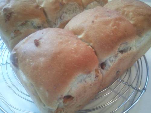 今朝、さすがに半袖を着るには涼しすぎる・・と思って、中途半端な服(七分袖?)を着たんですが、8時前に外に出ると、すでに気温は上昇中今日も昼間はあちぃ!日差しが、突き刺さるように鋭い感じがする。空気が澄んでいるせいかな。 四季咲きのミニバラは、咲き終わったかと思うと、また咲きだして、なんだかんだ、いつも いくつかの花が咲いています^^ さあて、今日はパン屋さん。2年前にリフォームした時、お世話になった同級生の大工さんから、リクエストをいただきました(^_^;)そう、2年前、新しいガスオーブンがうれしくて、大工さんに、たくさんパンを焼いて持っていったことがあって、そしたら、お母さんとか奥さんがすごく喜んでくれて、それ以来、たまに作って持っていっているんですが、今日は、娘ちゃん(4歳)からのリクエスト。「かたいけどやわらかいのが食べたい」なんか、なぞなぞみたいで困ります(;´Д`)直接、娘ちゃんから聞いたわけではなく、その大工の同級生から、又聞きするもんだから、「なにそれ?どういうパン?」と聞いても、「俺はパンのことはサッパリわからん。 どうも、そういうのがいいらしいで、頼むわ」って、私にもサッパリわからんよー(+o+) ああこんな時、一休さんにお願いして、ぽくぽくぽくぽく チーンって答えを出してもらいたい(笑) というわけで、かたいけどやわらかいパン。まあ、無難に、普通の菓子パンをいくつかと、外側はカリッと、中はフンワリな、カンパーニュなどのハード系を2種。久々の登場、ダンゴムシパン(笑)定番のアンパン奥さんリクエスト、ハムマヨパン。レーズン入りのソフトフランスパン風(苦しまぎれ)そして、カンパーニュ。幼児なのにハード系のパンが好き・・という情報をもとに、こんな感じで作りました。さっき届けてきたけど、娘ちゃん、大喜びでテンションマックス(笑)「おばちゃん、パン屋さんに住んでるの?」って(≧∇≦)かわいいねえ。 ****************さて明日は、ほんとはトランポリンだったんだけど、インストラクターさんの都合で、お休みになり、明後日は、走ろう会だったんだけど、これも、ほかのメンバーさんたち、別のイベントに参加する人が多く、出る人が少ないので、お休み・・先日のわかふじ大会も中止になったし、ちょっとスポーツが不振です(;´Д`)うーん、仕方がないとはいえ、運動不足の息子・・私じゃ、ウォーキングくらいしかできないけど、明日は歩きに行ってきます(^_^;)
