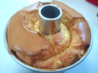 昨日は、台風だったので、大人しく家で過ごしましたが、今朝は、避難させてあった植木鉢やカメ水槽を動かして、あちこちお掃除。でも、思ったほどはひどくなくて、やれやれでした。ああ、台風一過。素晴らしい秋晴れ~~\(^o^)/暑いけど、カラッとしていて気持ちいぃ♡秋は、すぐに終わってしまうから、大事にしたいな~と思うけど、どうやって大事にすればいいんだろう? そう、昨日は台風で外に出ることもできず、ヒマだったので、先日作った栗の甘露煮を使って、シフォンケーキを焼きました♪いつもの材料に、粗くみじん切りにした栗を入れて、甘露煮のシロップやラム酒もちょっと入れて・・分量はテキトーだったので、うまくできるか心配だったけど・・おお~~~!きれいに焼けたではないかー! 調理台の上で写真を撮ると、なぜか、台が青っぽく写ります(^_^;)ほんとは白です。人工大理石? 取り出してみると・・じゃーん! ひゃっほ~~い\(^o^)/すんごくきれいにできたあ パウダーシュガーをふりかけて、ちょっと味見を♪ ルンルン シロップを入れるので、砂糖は控えめにしたけど、ちょっと甘さが足りなかったな(^_^;)ホイップクリームを添えたら、すごく合いそう^^刻んだ栗が、ポロポロとたくさん入っていて、フワッと軽いので、ペロッと食べれちゃうよ~( ̄¬ ̄*)というわけで、久々のシフォンケーキでした。 《覚え書き》たまご 4個甘露煮 100g(6個くらい)シロップ 40cc牛乳 20cc薄力粉 80gグラニュー糖 20gサラダ油 53cc(細かいっ!)焼成 180℃ 30分※砂糖は、もうちょい増やしてもよい。 ****************** 今日は、同級生の友達から、ハード系なパンのリクエストをいただいたので、これまた久々に、ホシノ酵母を起こしています^^てか、こないだ冷蔵庫の中をお掃除していたら、半年くらい前に買った、ホシノ酵母が出てきた( ̄▽ ̄;)ああ、賞味期限が切れてなくてよかった適温は、25~30℃っていうから、今の時期、まさにピッタリ(o^-')bなんかワクワクしますぅ