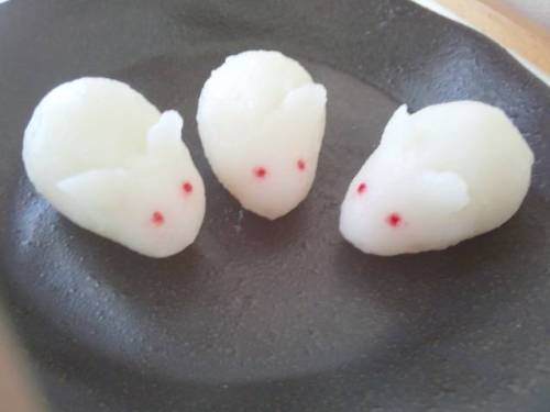 秋を感じることが増えてきて、朝晩の涼しさも一段と・・ですね。クーラーも扇風機も要らなくて、明け方は布団にくるまっているなんてね~あんなに暑かった夏は、どこに?今日から、肌掛け布団はやめて、普通のお布団にしました。かえでは今日から長袖のパジャマです。今日は布団干しやシーツ洗いなどなど、なんだか知らんが、いろいろ忙しかった・・(^_^;) そんでもって、今日は中秋の名月。月見団子を作りました^^お団子は、里芋の代わりだと聞いたことがあるので、丸いお団子もいいけど、ちょっと里芋型に似せて・・・うさぎさん♪飴細工をする人みたい~^^なんて思いながら作ってみたけど、やっぱり、立体的になると、私は苦手だなー・・と(^_^;)きれいな形にするのは、簡単そうに見えて、意外と難しい。赤い目は、食紅を使いました♪ちょっと、ハツカネズミみたいですが( ̄▽ ̄;) すすきも飾ります。すすきは、稲穂の代わり・・らしい。 お団子は2種類作って・・ちょうど、お月さまが見える場所がなくて、玄関に飾りました(^_^;)あとは、お月さまが出るのを待つだけ。月見のお茶もあります^^うーん、普通の深蒸し茶です(^_^;)というわけで、お月さま登場\(^o^)/眩しいくらいの月明かり。なんか、涙が出そう・・(゚ーÅ)って、外が涼しすぎて、鼻水が出そう。ではでは、虫の音だけをBGMに、秋の夜長を楽しみましょう・・・いや、楽しみたいんだけど、明日はパン屋さんなので、早く寝ないと・・(;´Д`)